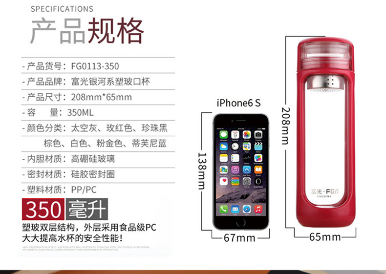 材質(zhì):內(nèi)膽玻璃+外層塑料